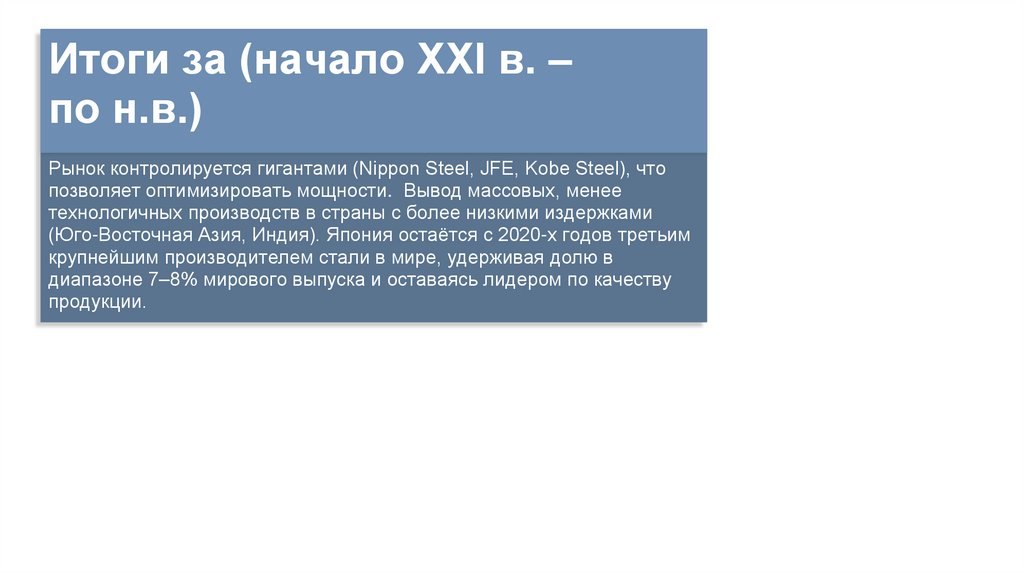 Рынок контролируется гигантами (Nippon Steel, JFE, Kobe Steel), что
