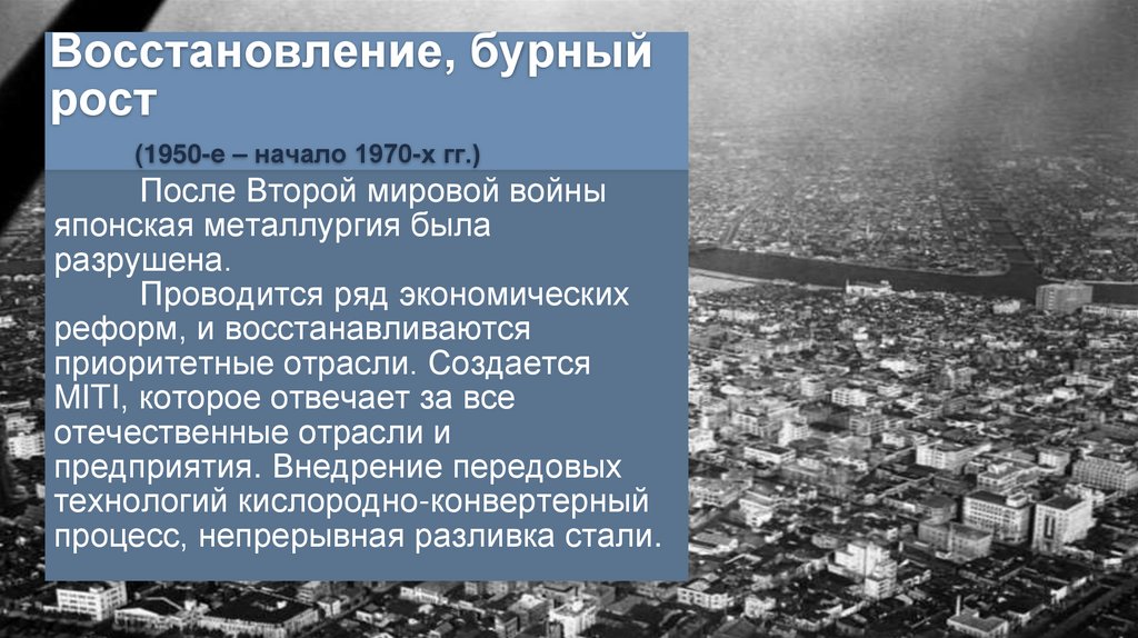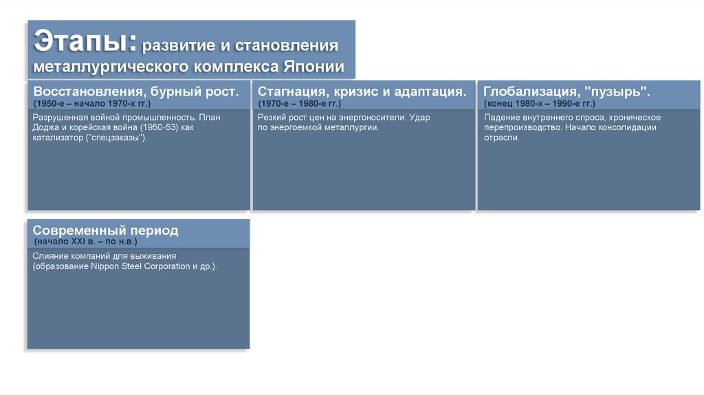 Этапы: развитие и становленияметаллургического комплекса Японии