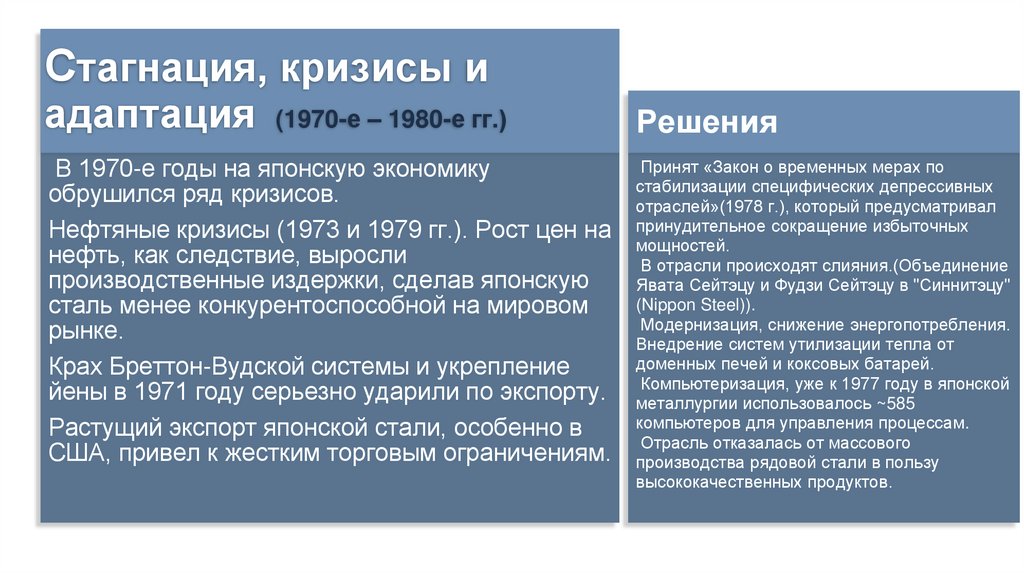 Стагнация, кризисы иадаптация (1970-е – 1980-е гг.)