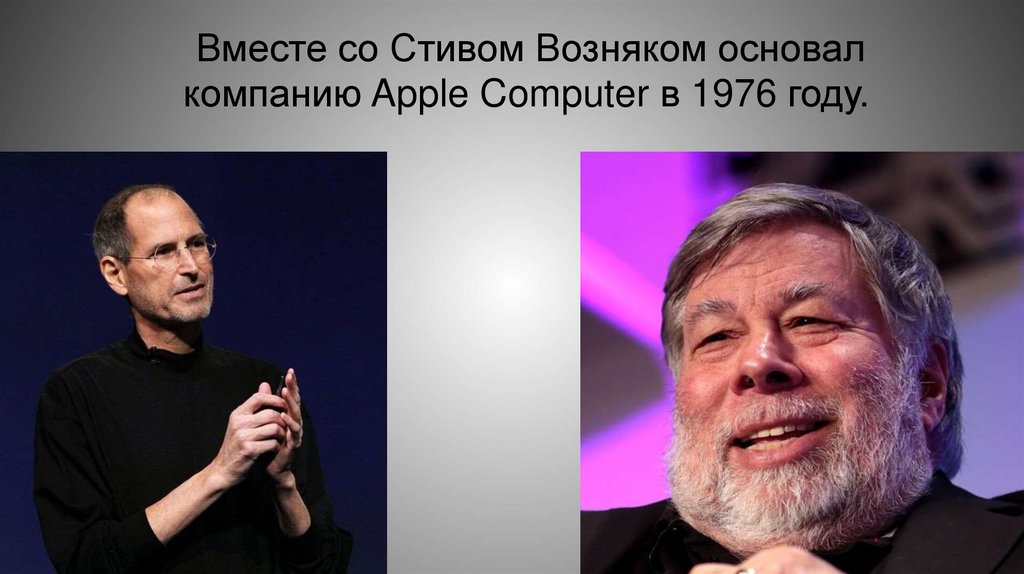 Вместе со Стивом Возняком основалкомпанию Apple Computer в 1976 году.