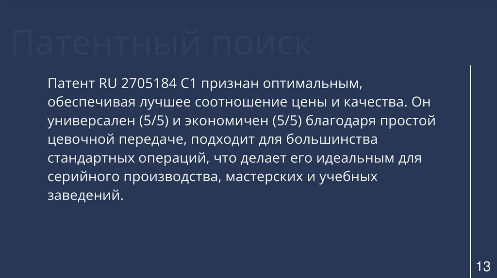 Патент RU 2705184 C1 признан оптимальным,обеспечивая лучшее соотношение цены и качества. Он