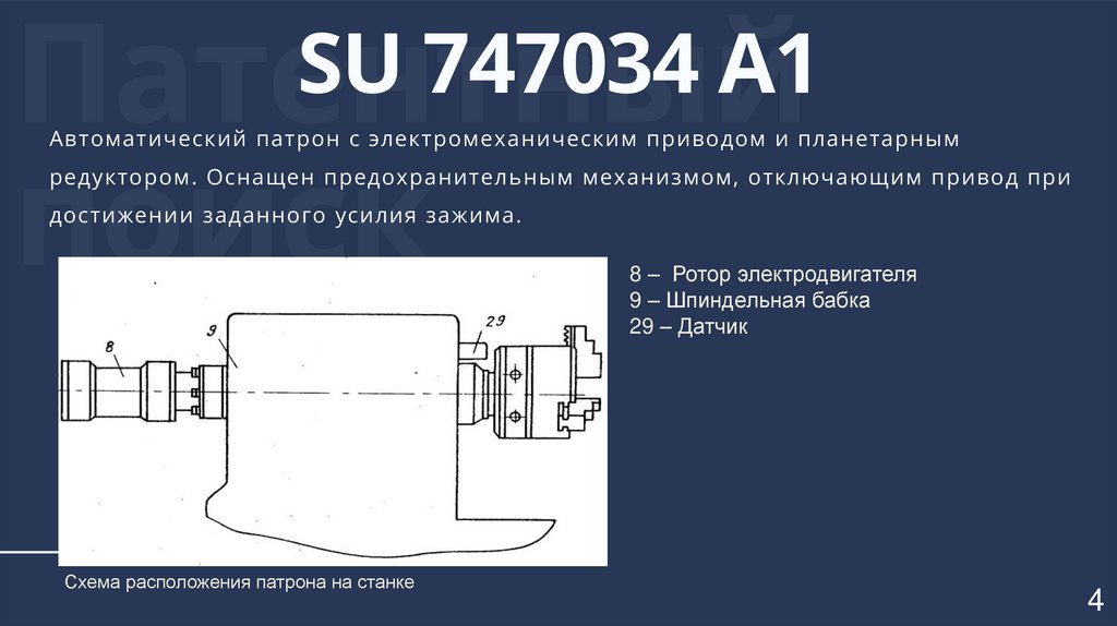SU 747034 A1Автоматический патрон с электромеханическим приводом и планетарным