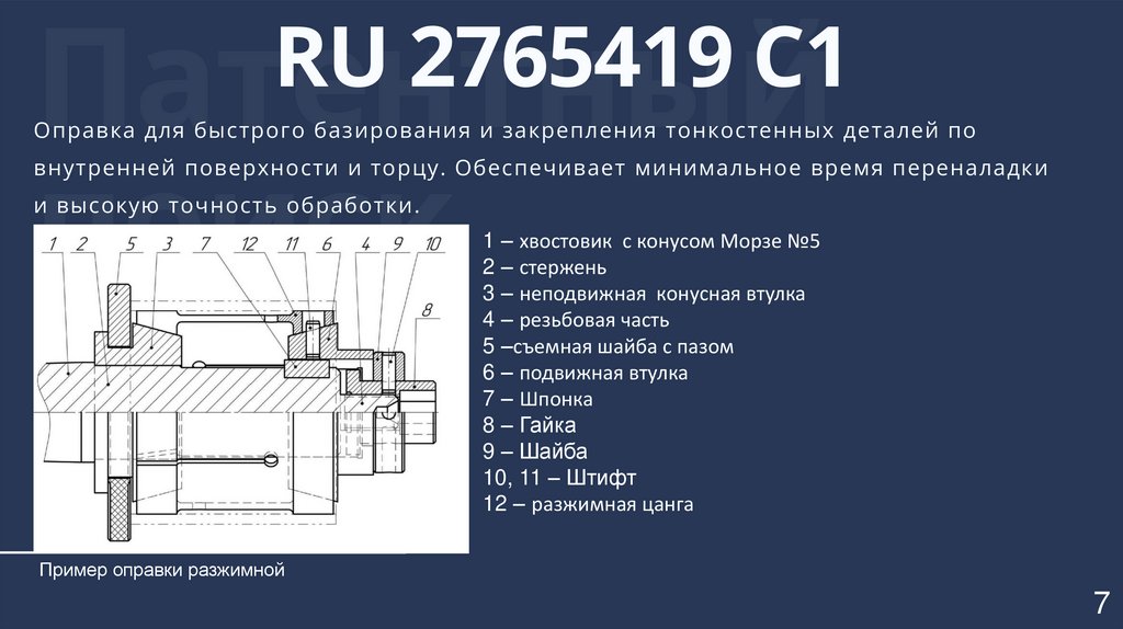 RU 2765419 C1Оправка для быстрого базирования и закрепления тонкостенных деталей по