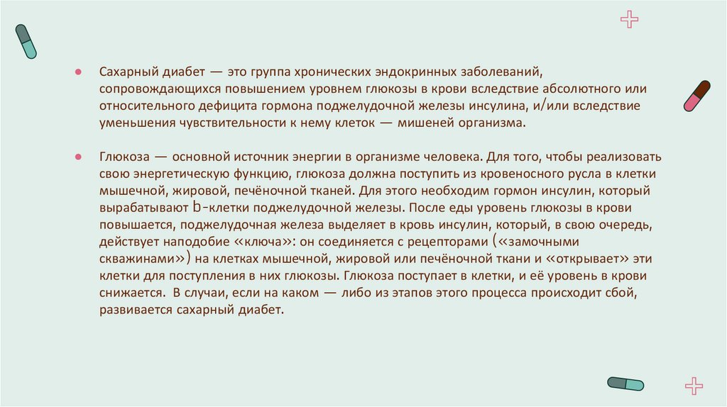 Сахарный диабет — это группа хронических эндокринных заболеваний,