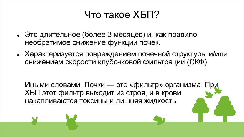 Что такое ХБП?Это длительное (более 3 месяцев) и, как правило,