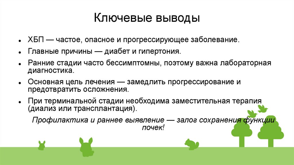 Ключевые выводыХБП — частое, опасное и прогрессирующее заболевание.