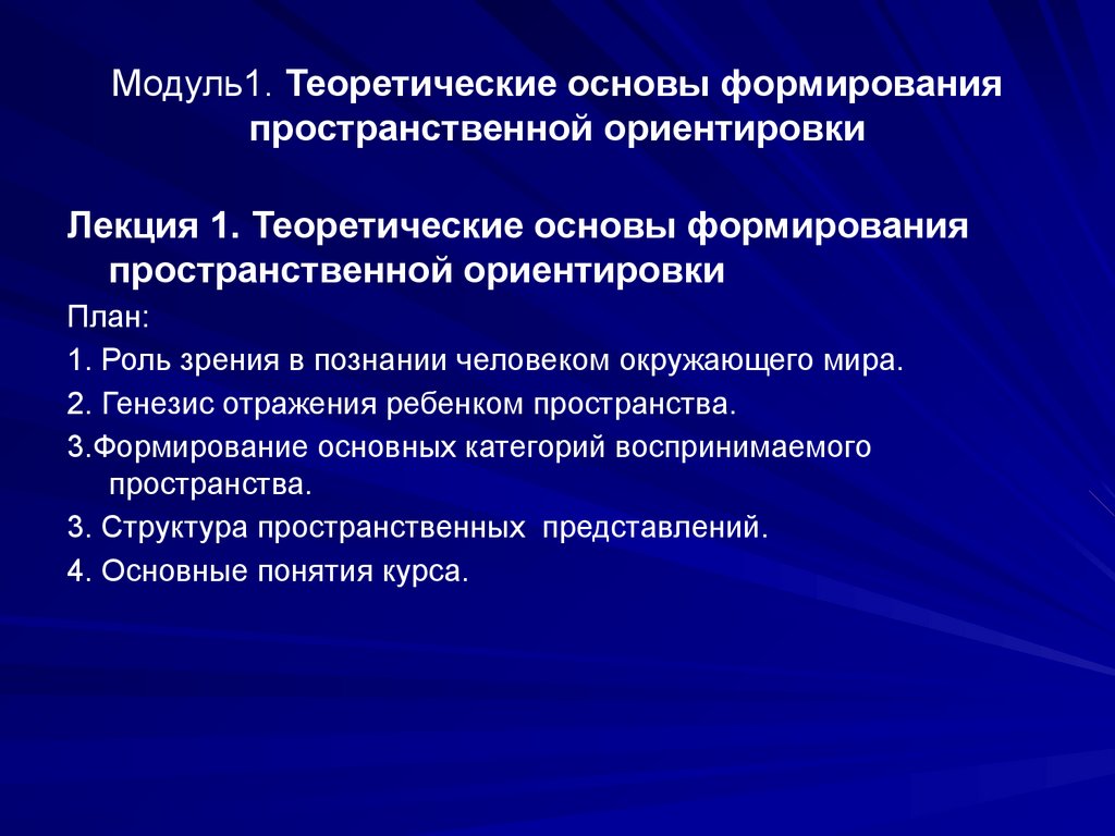 Модуль1. Теоретические основы формированияпространственной ориентировки