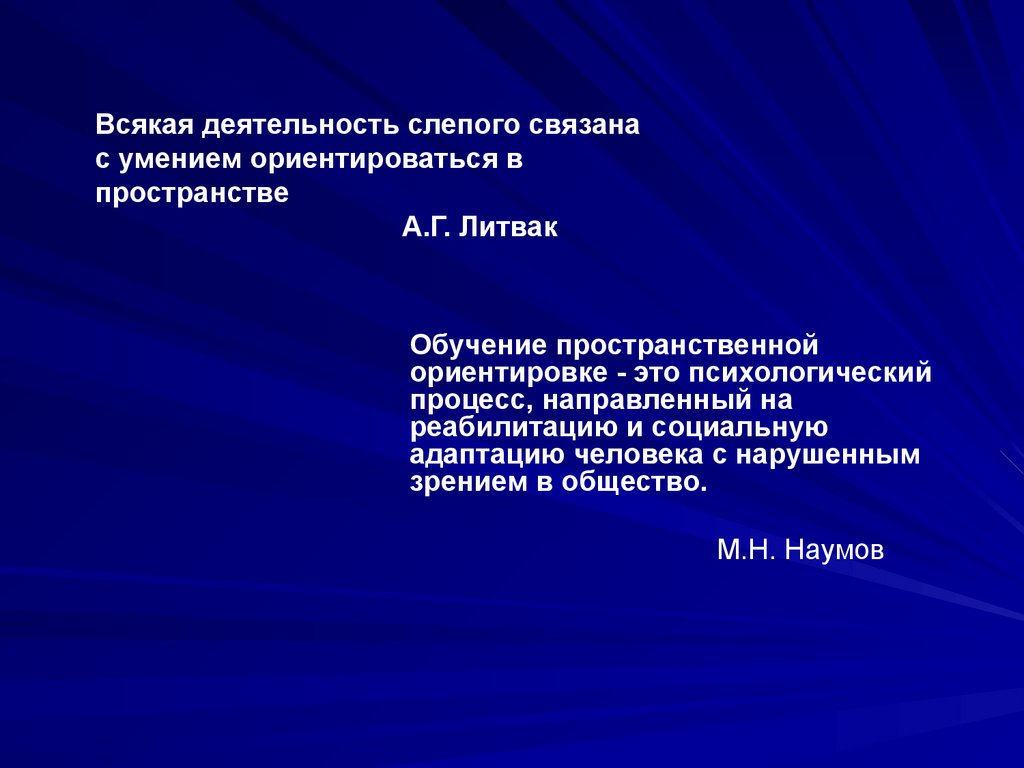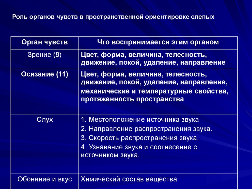 Всякая деятельность слепого связанас умением ориентироваться в