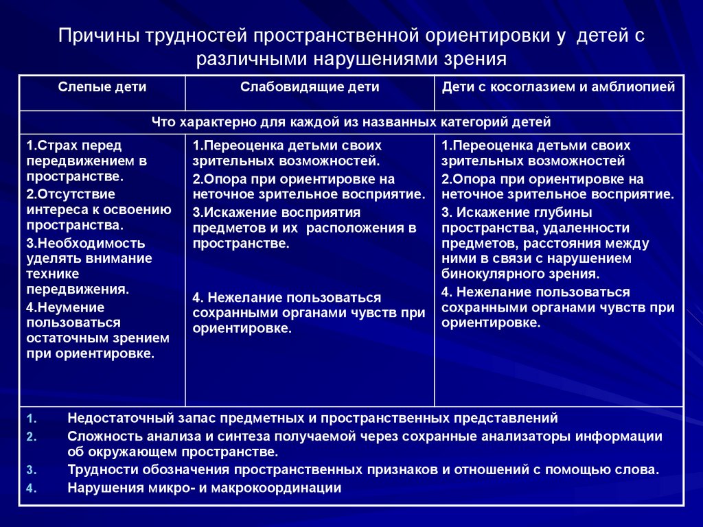 пространственной ориентировке и мобильности