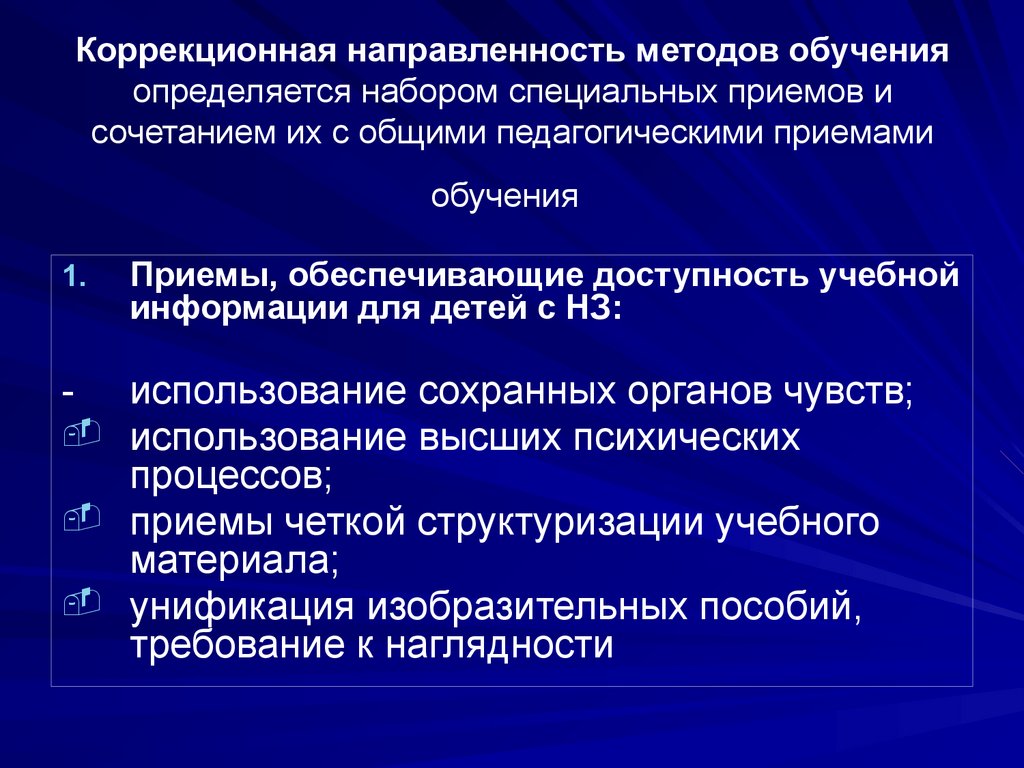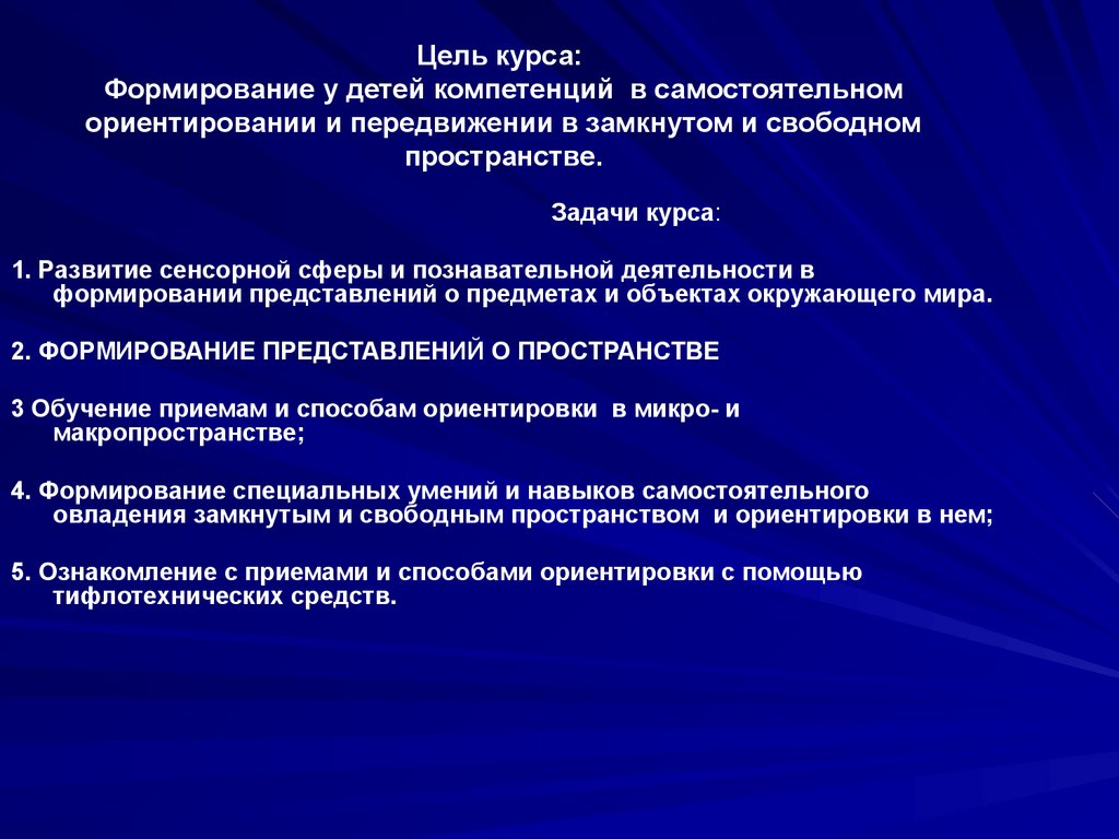 Цель курса: овладение студентами теоретическими ипрактическими знаниями по обучению детей с НЗ