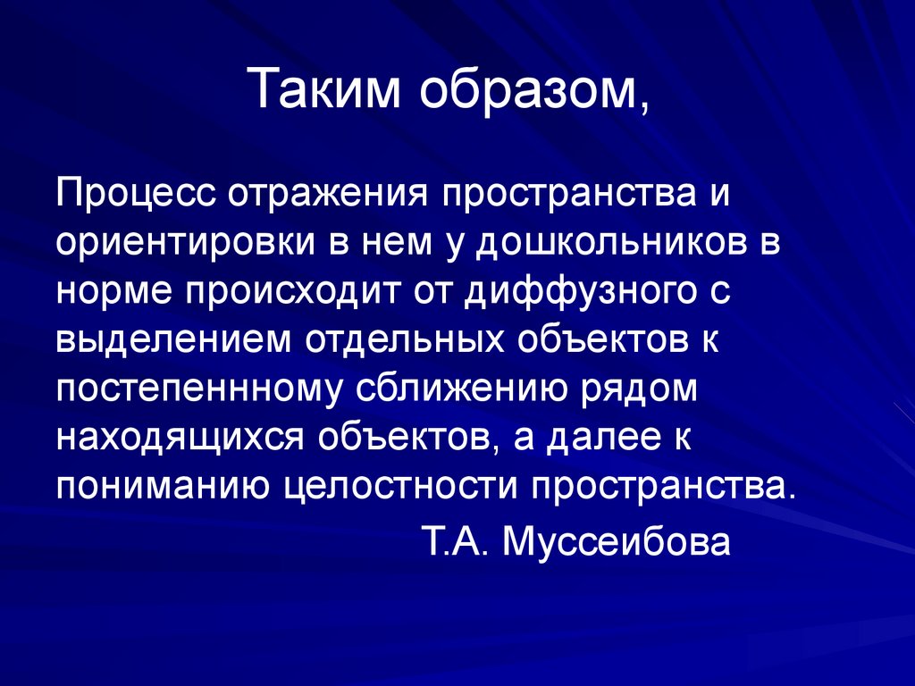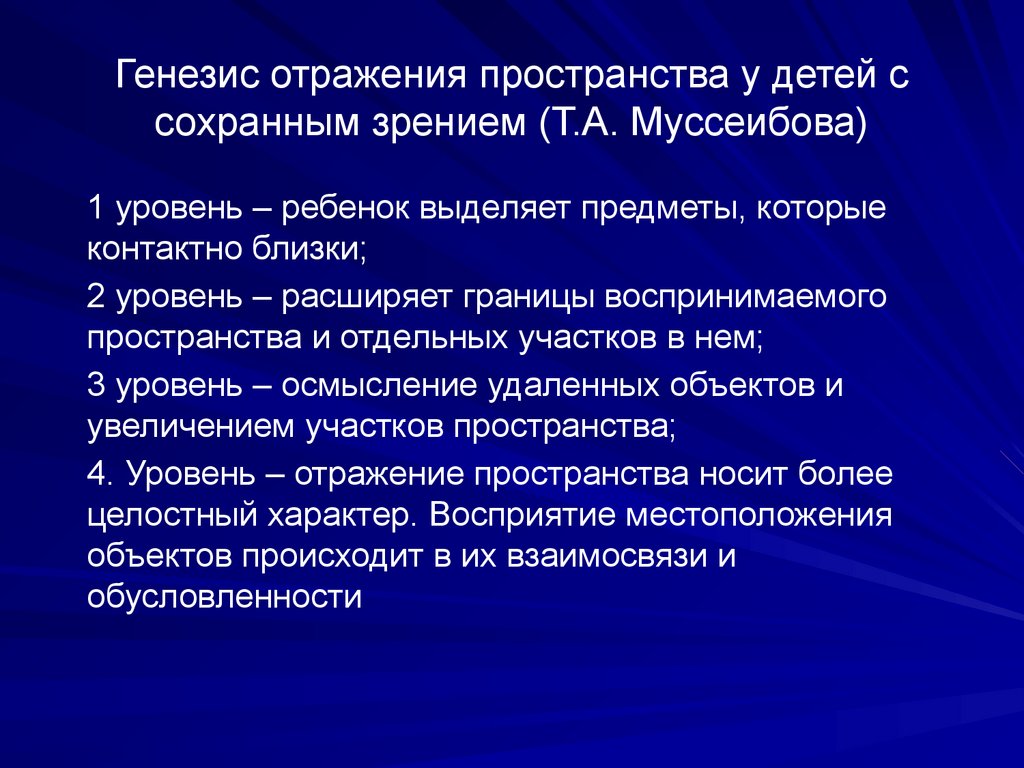 Генезис отражения пространства у детей ссохранным зрением (Т.А. Муссеибова)