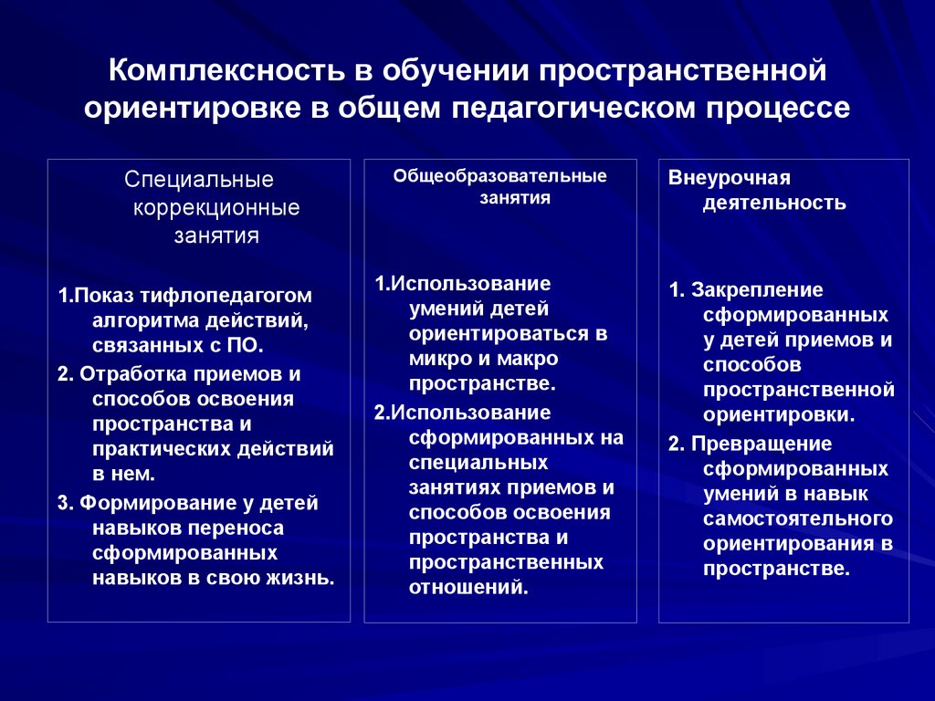 Комплексность в обучении пространственнойориентировке в общем педагогическом процессе