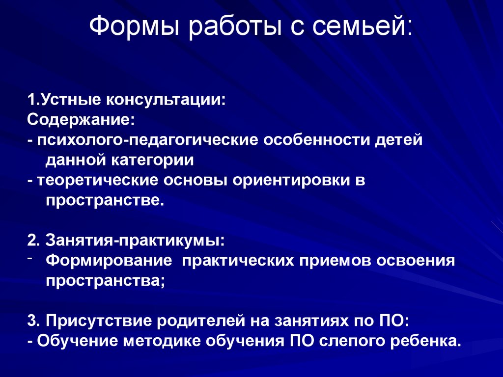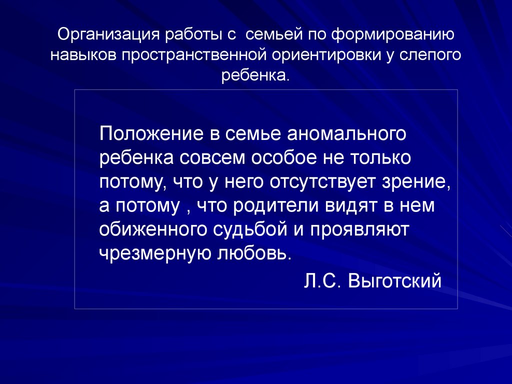 Организация работы с семьей по формированиюнавыков пространственной ориентировки у слепого