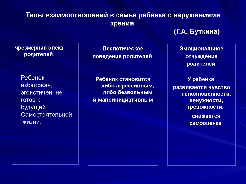 Типы взаимоотношений в семье ребенка с нарушениямизрения