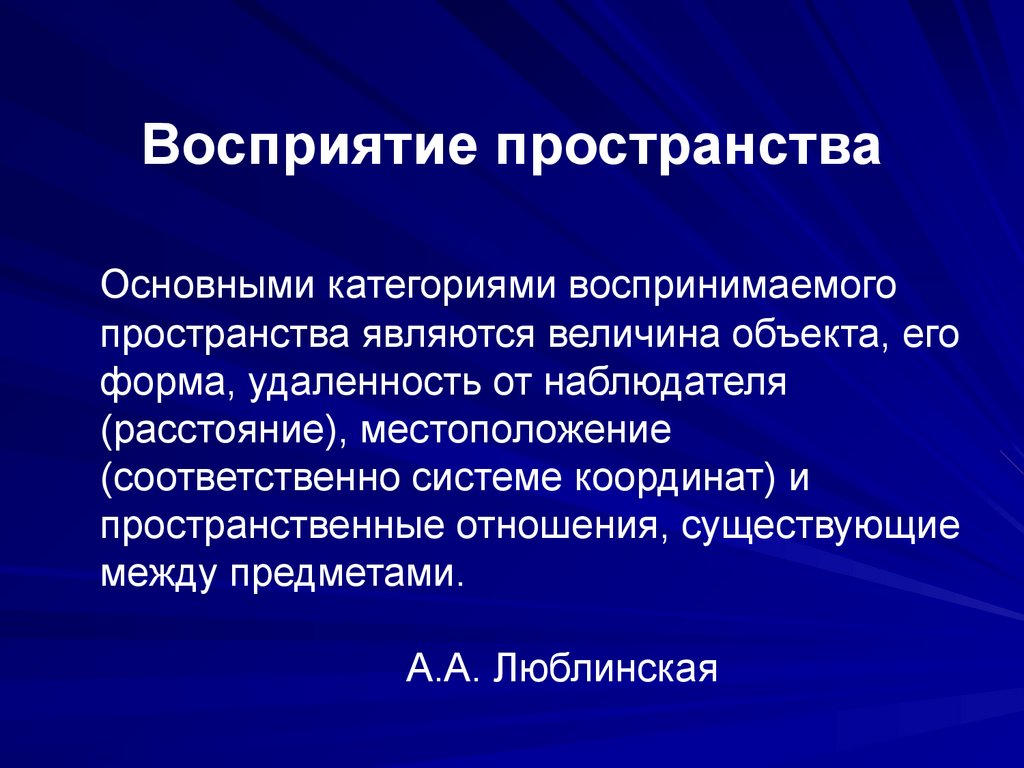Восприятие пространстваОсновными категориями воспринимаемого