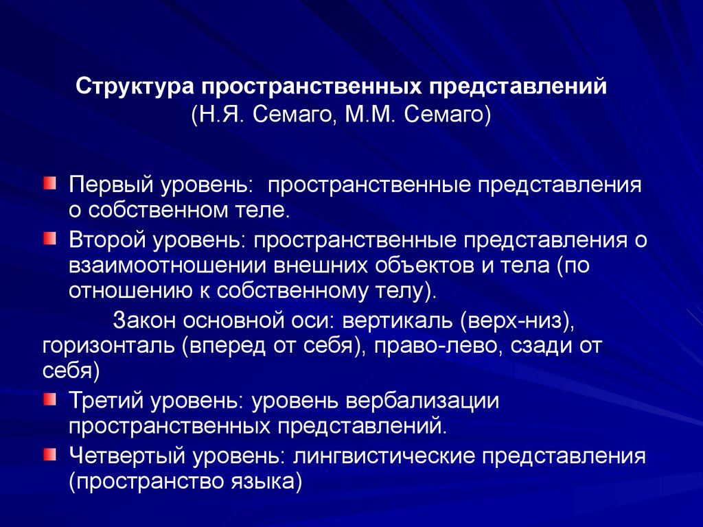 Структура пространственных представлений(Н.Я. Семаго, М.М. Семаго)