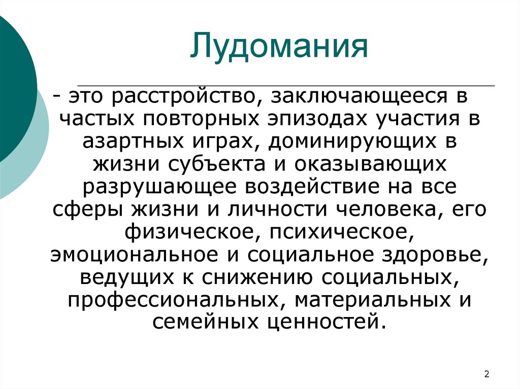 Лудомания- это расстройство, заключающееся в