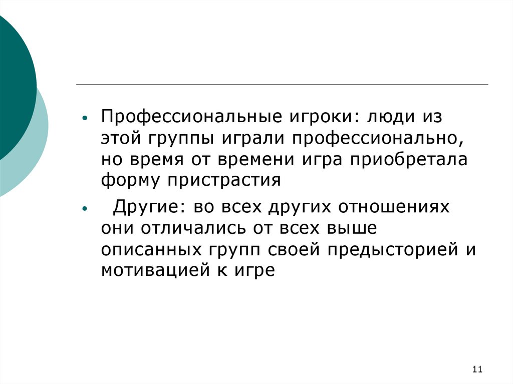 Профессиональные игроки: люди изэтой группы играли профессионально,