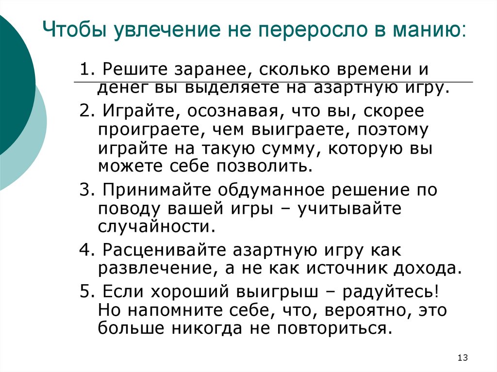 4. Расценивайте азартную игру как