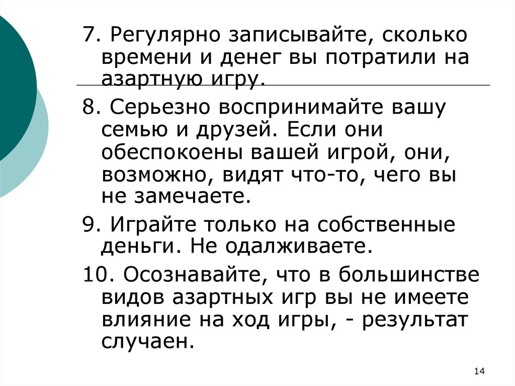 9. Играйте только на собственные