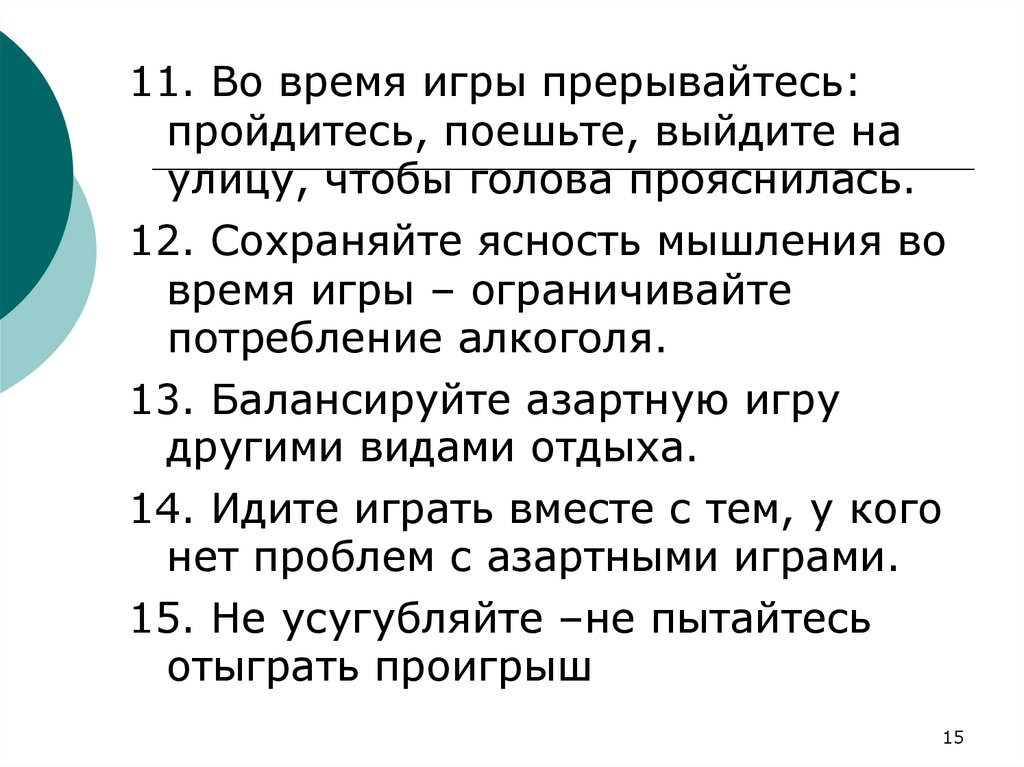 11. Во время игры прерывайтесь:пройдитесь, поешьте, выйдите на