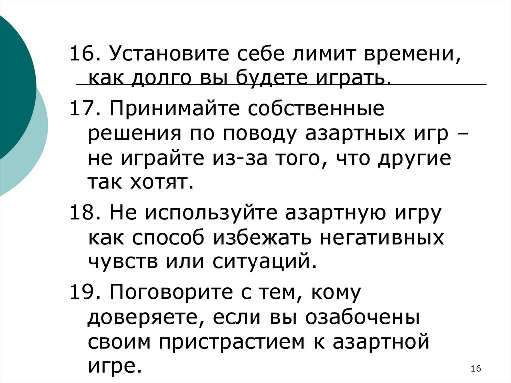 18. Не используйте азартную игру