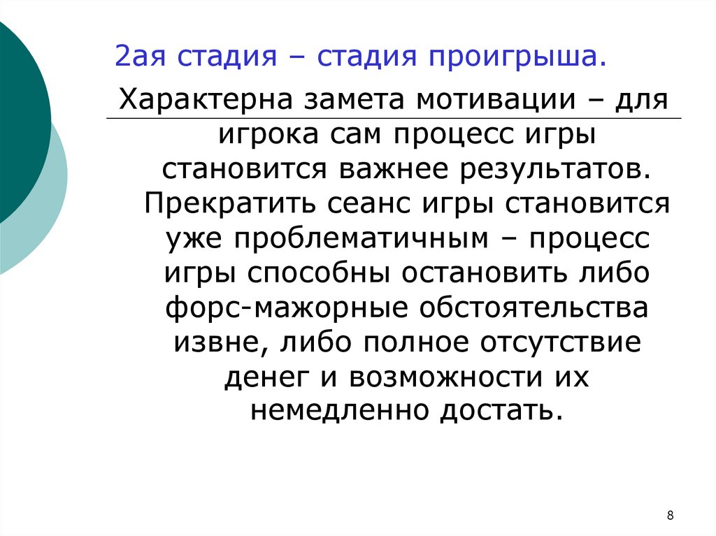 2ая стадия – стадия проигрыша.Характерна замета мотивации – для