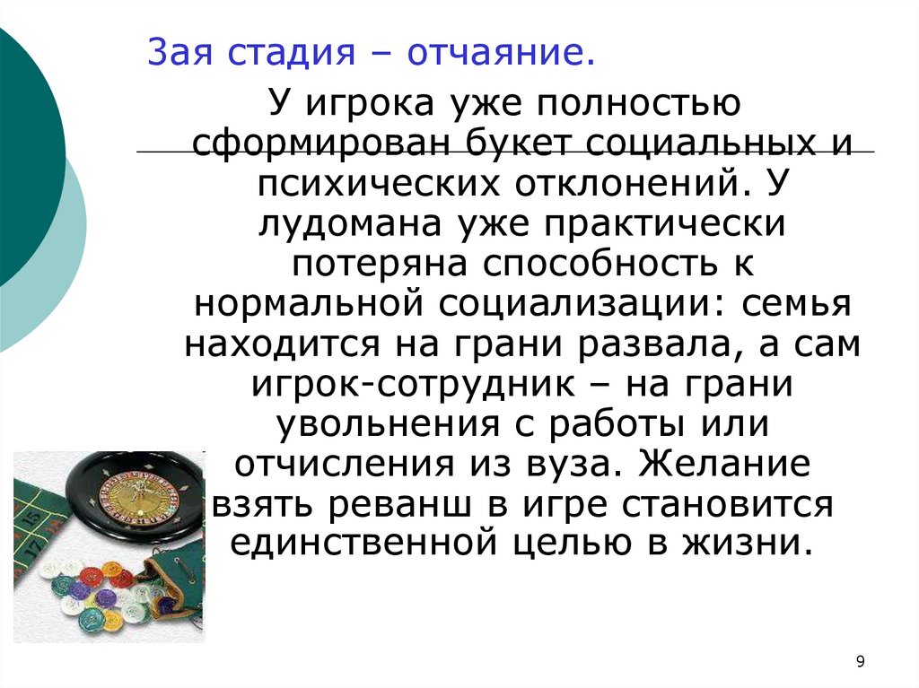 3ая стадия – отчаяние.У игрока уже полностью