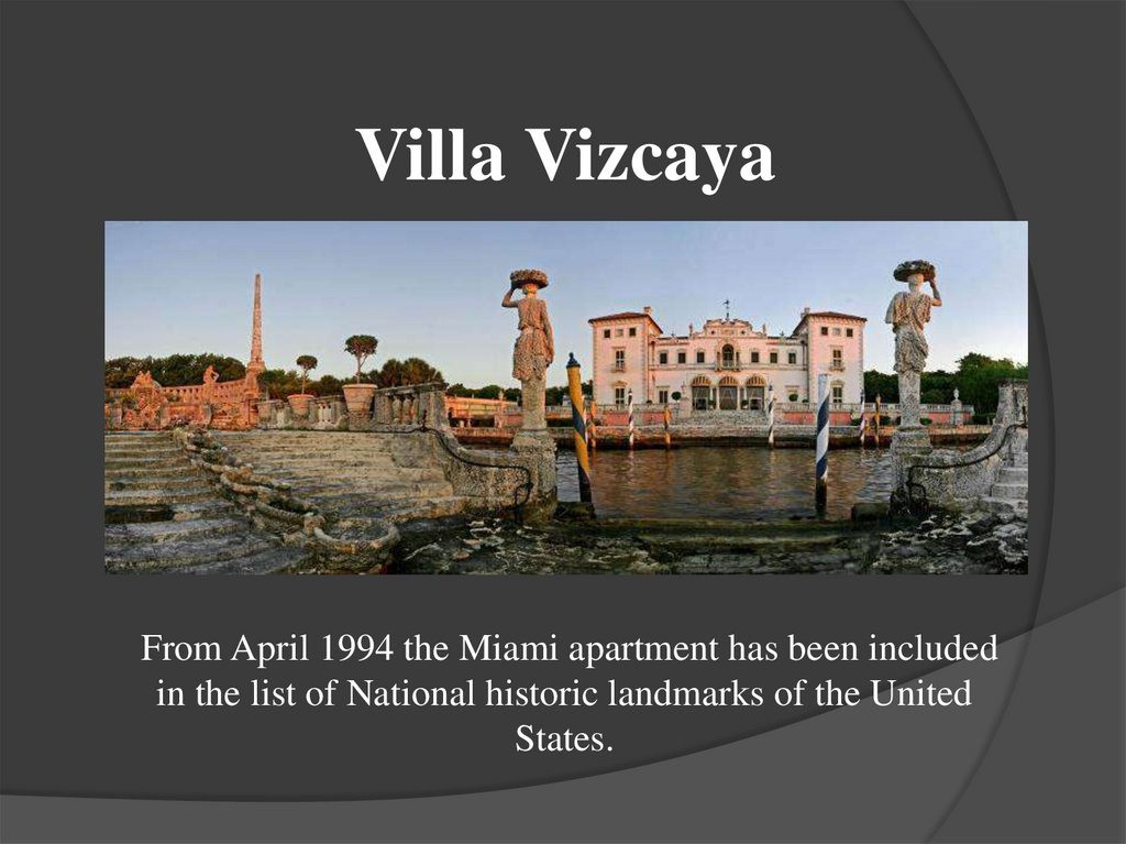 Villa VizcayaFrom April 1994 the Miami apartment has been included