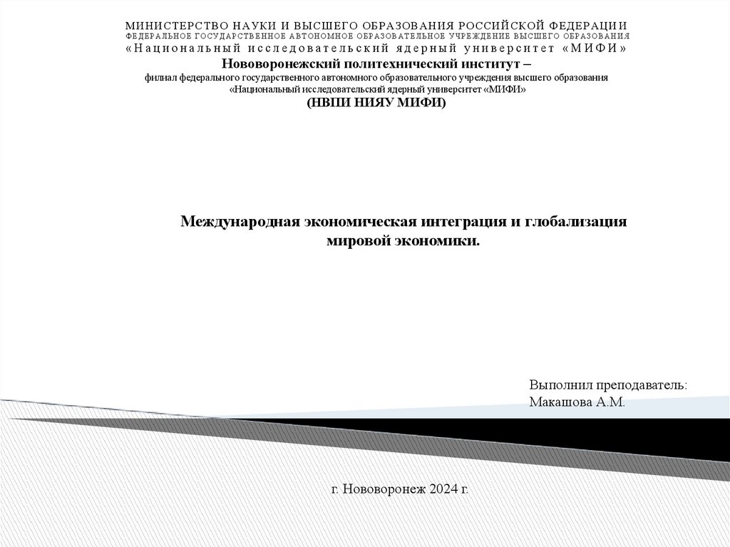 Международная экономическая интеграция и глобализация