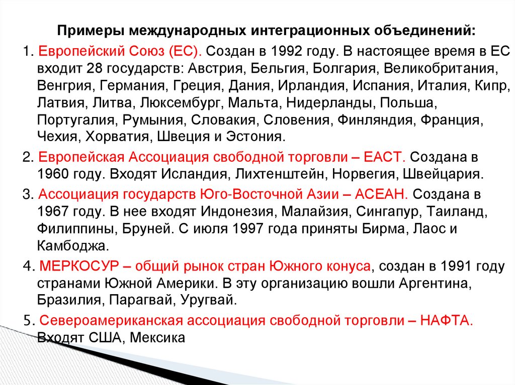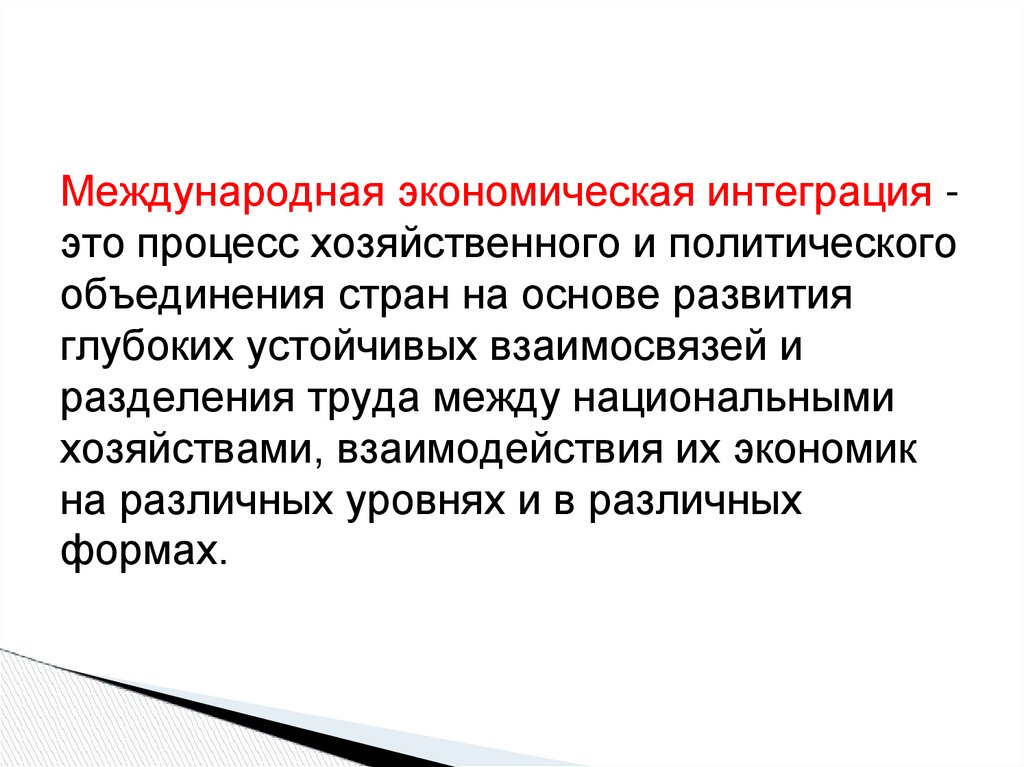Международная экономическая интеграция это процесс хозяйственного и политическогообъединения стран на основе развития