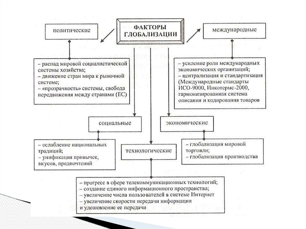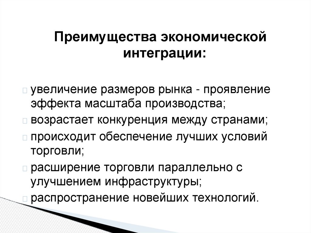 обострение международной конкуренции;экономия на масштабах производства;