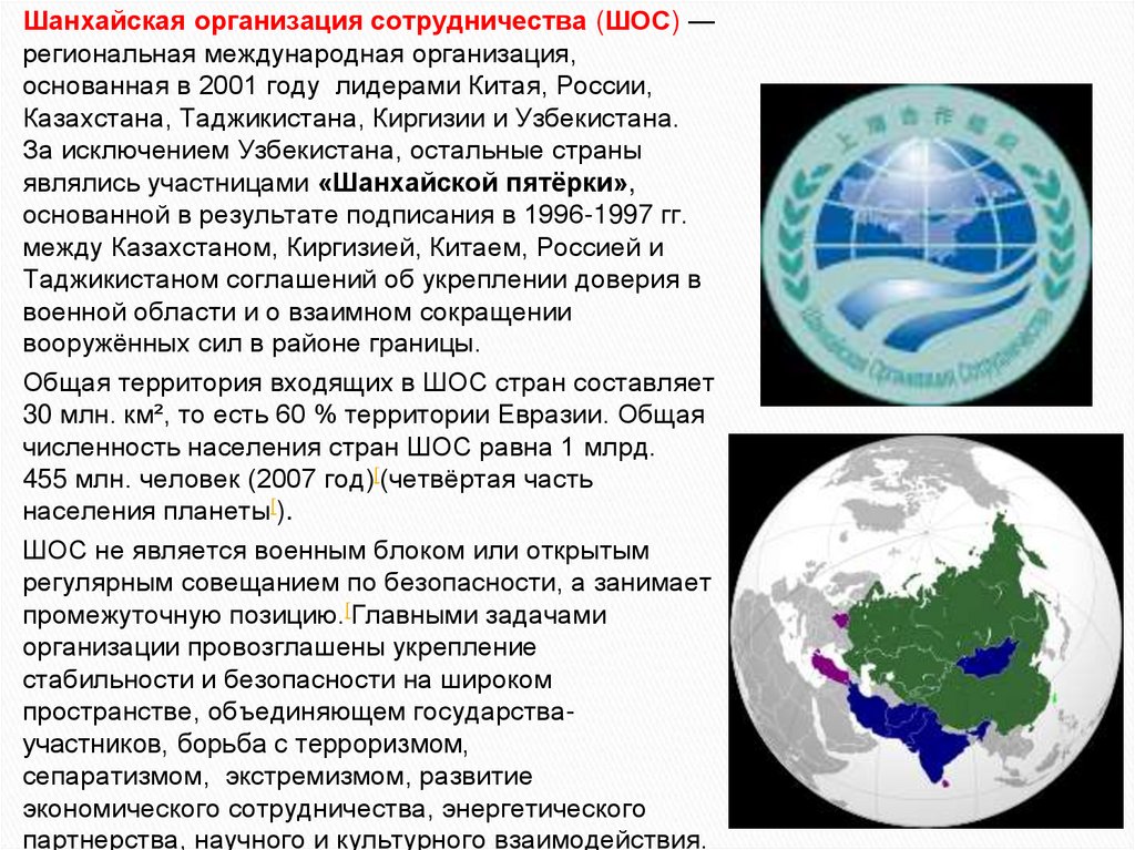 Общая территория входящих в ШОС стран составляет