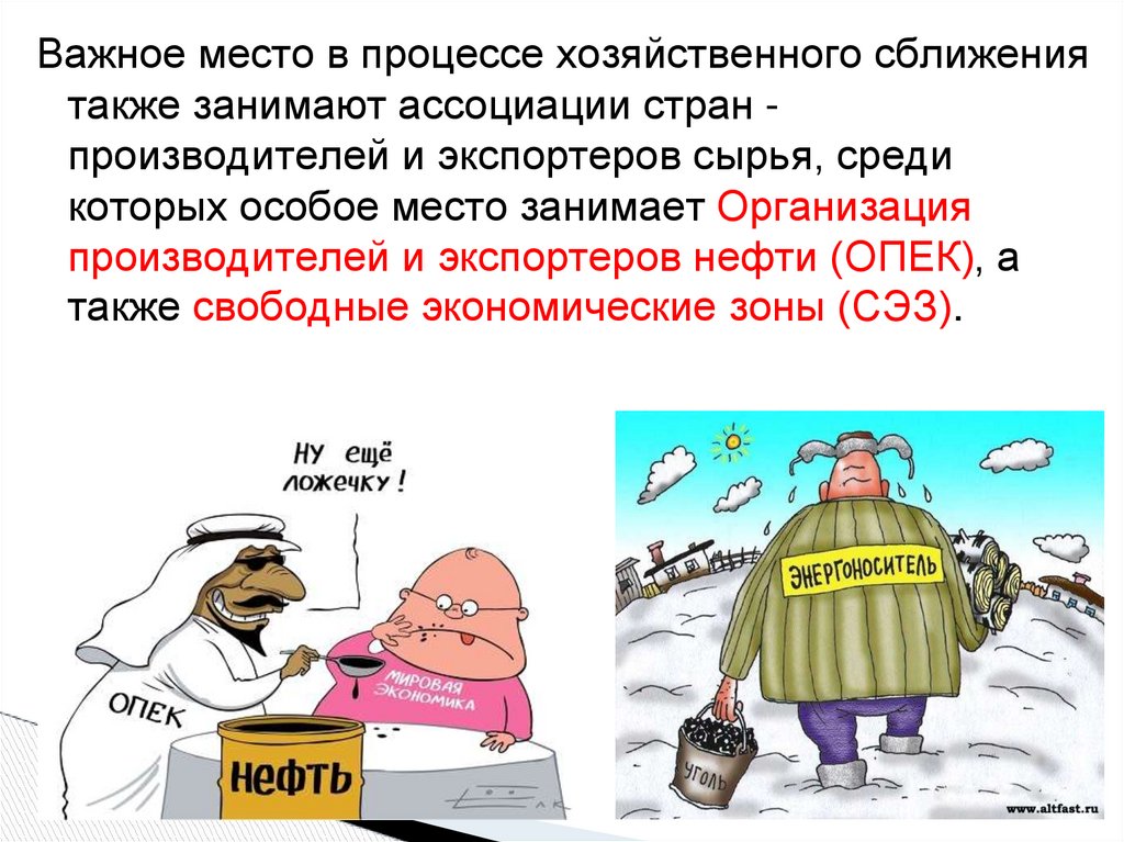 Важное место в процессе хозяйственного сближениятакже занимают ассоциации стран производителей и экспортеров сырья, среди