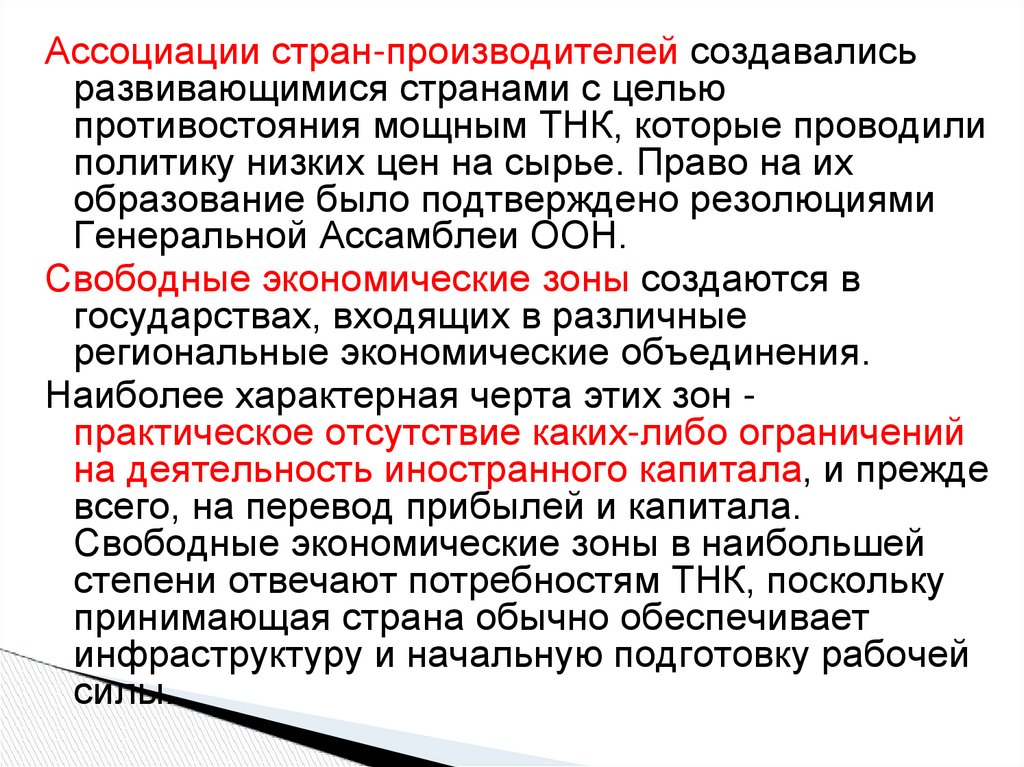 Ассоциации стран-производителей создавалисьразвивающимися странами с целью