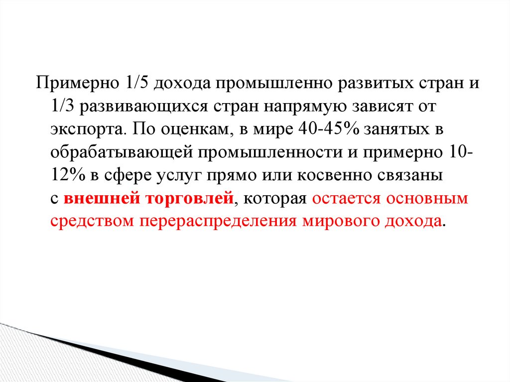 Примерно 1/5 дохода промышленно развитых стран и1/3 развивающихся стран напрямую зависят от