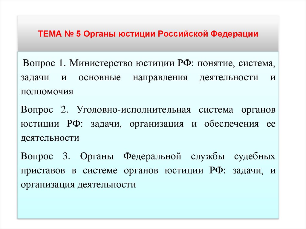 1. ТЕМА № 5 Органы юстиции Российской Федерации