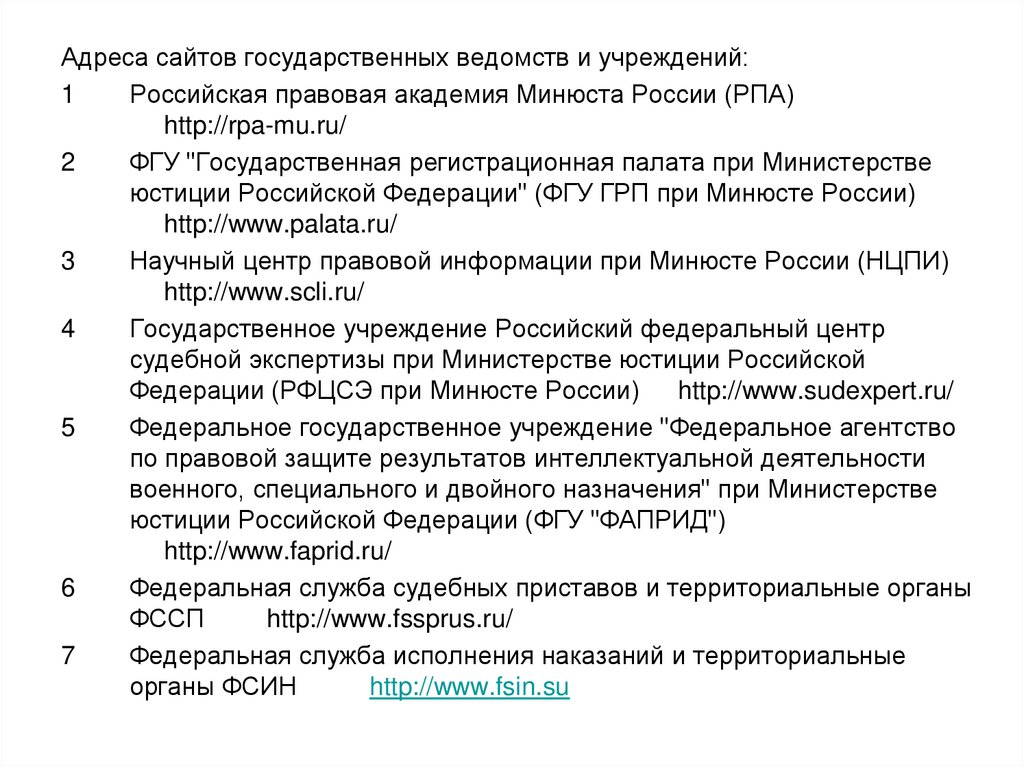 юстиции Российской Федерации (ФГУ "ФАПРИД")