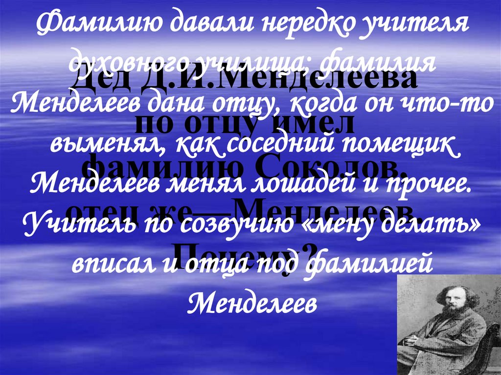 Менделеев дана отцу, когда он что-то