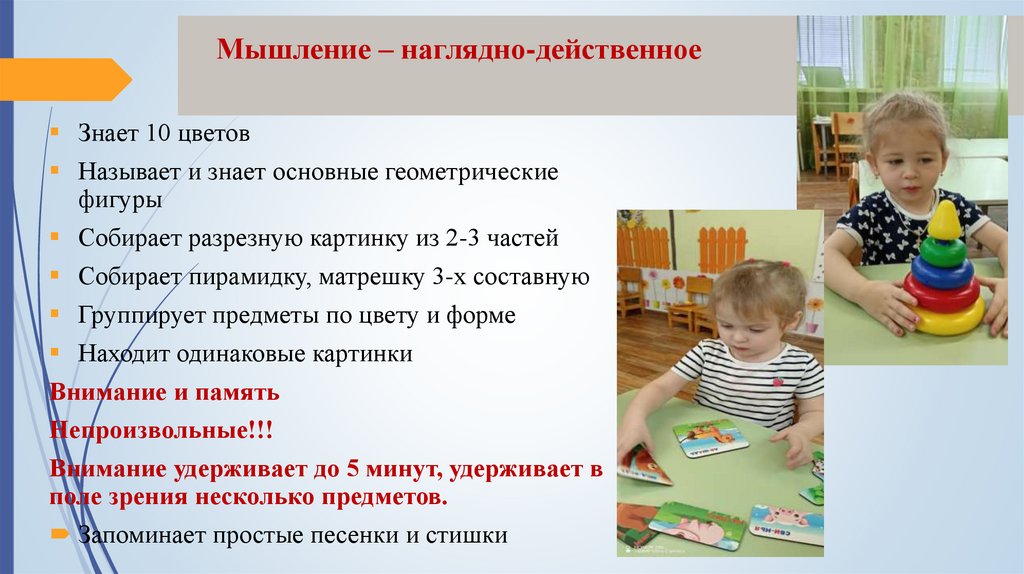 Мышление – наглядно-действенноеЗнает 10 цветов