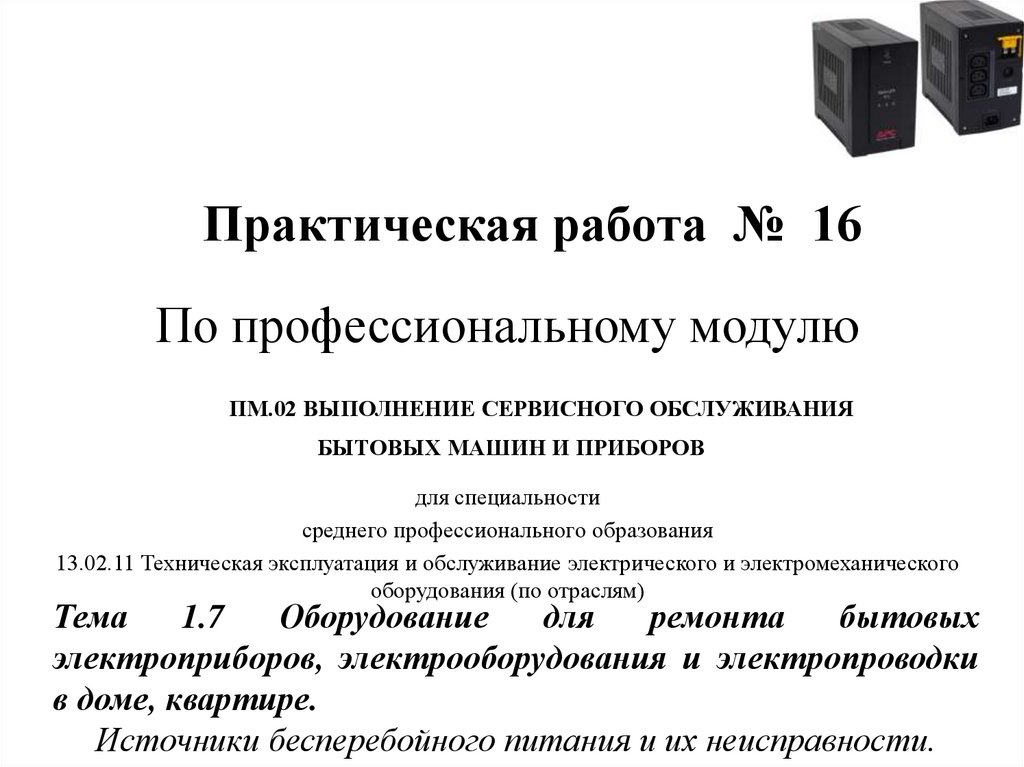 Пз_16_ Источники бесперебойного питания и их неисправности (Тема 1.7)