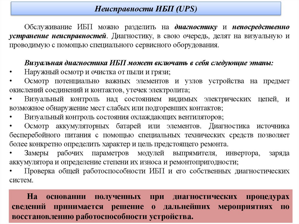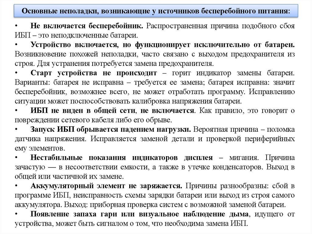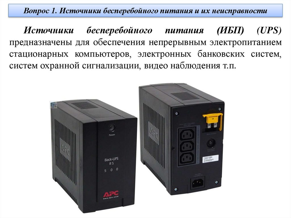Вопрос 1. Источники бесперебойного питания и их неисправностиИсточники бесперебойного питания (ИБП) (UPS)