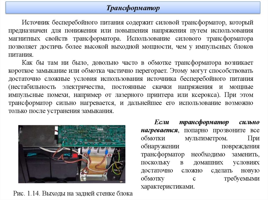 ТрансформаторИсточник бесперебойного питания содержит силовой трансформатор, который