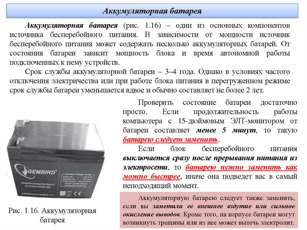 бесперебойного питания может содержать несколько аккумуляторных батарей. От