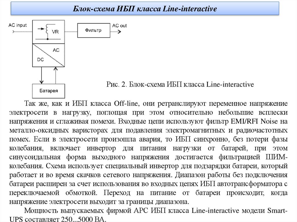 Блок-схема ИБП класса Line-interactiveРис. 2. Блок-схема ИБП класса Line-interactive