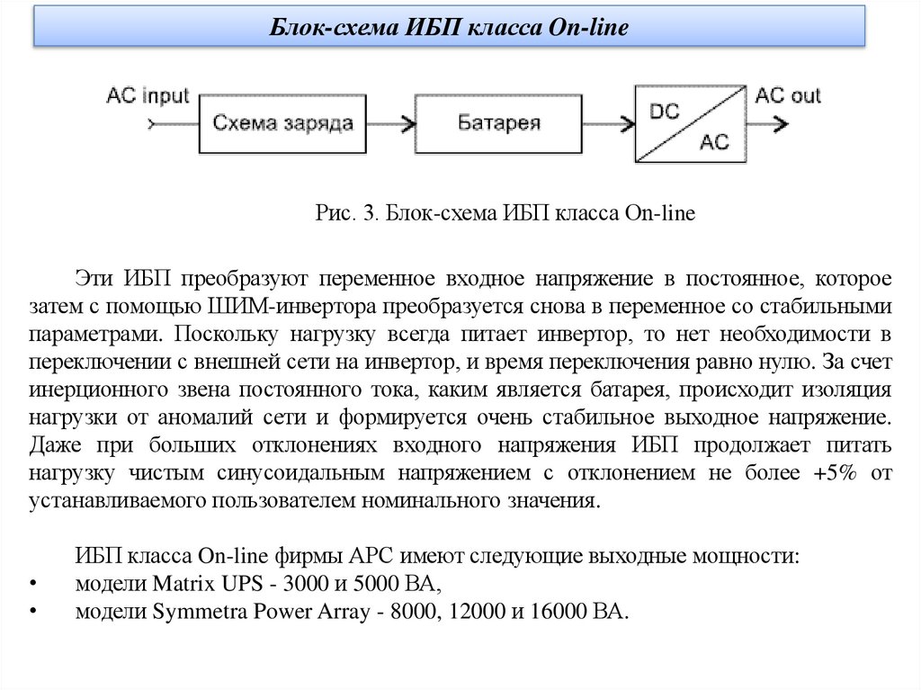 Блок-схема ИБП класса On-lineРис. 3. Блок-схема ИБП класса On-line