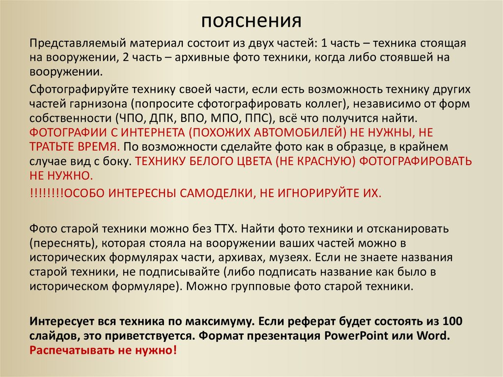 Представляемый материал состоит из двух частей: 1 часть – техника стоящаяна вооружении, 2 часть – архивные фото техники, когда либо стоявшей на