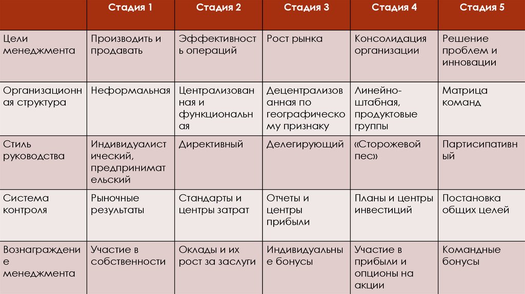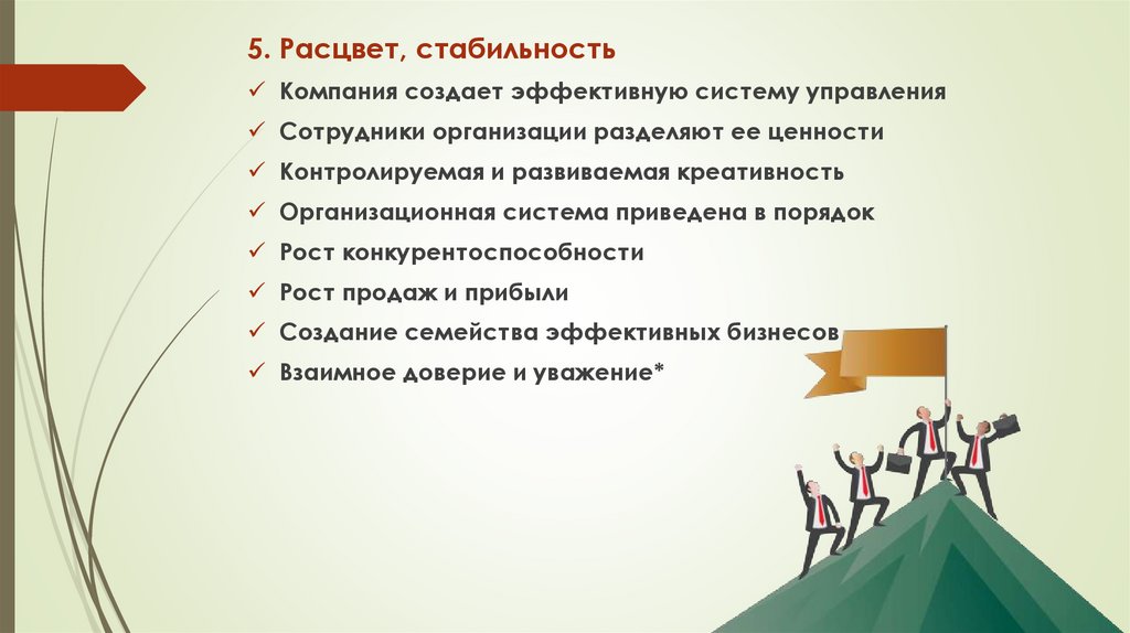 5. Расцвет, стабильностьКомпания создает эффективную систему управления