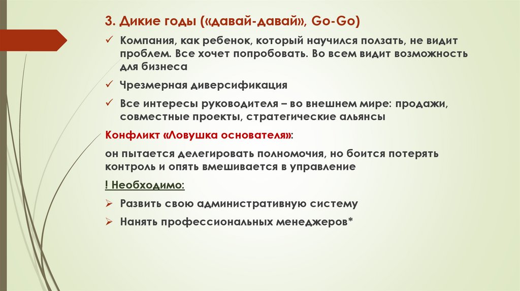3. Дикие годы («давай-давай», Go-Go)Компания, как ребенок, который научился ползать, не видит