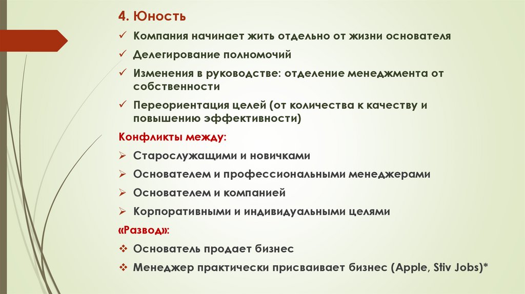 4. ЮностьКомпания начинает жить отдельно от жизни основателя